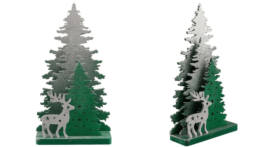 Елочки зеленые с оленем (18см) (дерево) (НГ2018-013)