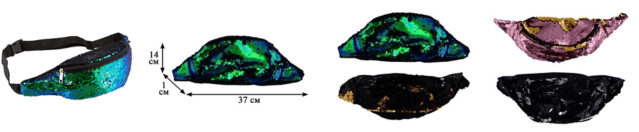 Сумка-шоппер на пояс на молнии с пайетками (текстиль) (37см)