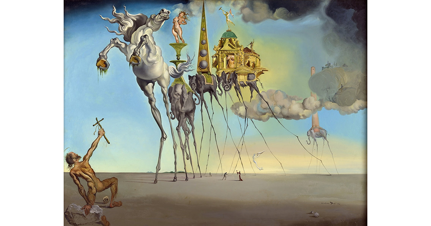 На полотне Дали воплотил историю Святого Антония. Отшельник отправился в пустыню, где его много ночей искушали демоны, пытаясь найти слабое место и доказать бесконечную власть дьявола.