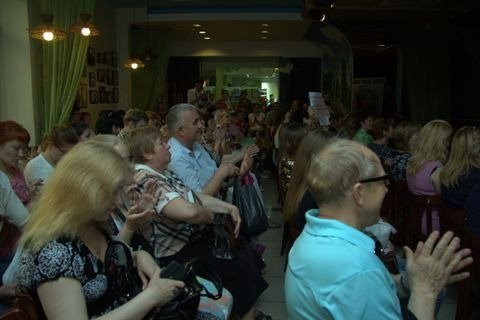 Встреча с королевой отечественного детектива Александрой Марининой прошла с аншлагом. За несколько минут до начала встречи зал кофейни «Ясная поляна» был заполнен, свободных мест не было совсем. Поклонники стояли даже в дверях.