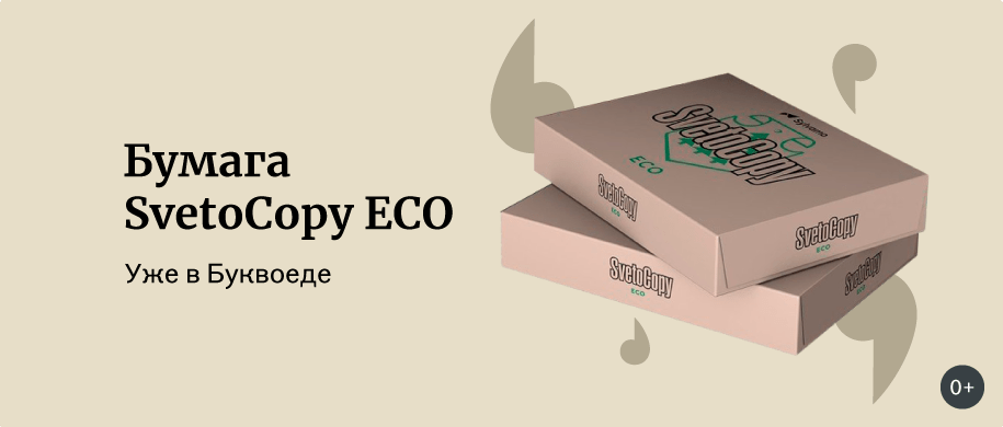 У нас в продаже появился новый вид универсальной офисной бумаги SvetoCopy ECO. От привычной бумаги внешне отличается лишь цветом - при изготовлении используется полубелёная целлюлоза, что придаёт бумаге цвет слоновой кости. Бумагу можно заказать с бесплатной доставкой в любой магазин «Буквоед». В продажу в розничные магазины бумага поступит в ближайшее время.