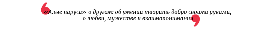 Описанную в «Алых парусах» чудесную историю мне хотелось «поставить на землю», сделать её ощутимо реальной, отмести пошловатый «романтический флёр», наброшенный на эту вещь в советские времена. «Алые паруса» о другом: об умении творить добро своими руками, о любви, мужестве и взаимопонимании. Очень актуально, не правда ли?