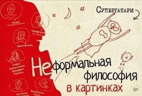 «Неформальная философия в картинках» Супергатари (на самом деле под этим именем скрывается художник Миша Гертельман) – тот случай, когда автор явно знает что-то сугубо своё личное о живописи, но отлично разбирается в самых мудрёных философских концепциях. Все достижения мировой мысли можно пролистать за вечер. И теперь даже ребёнку легко объяснить, чем знаменит Кьеркегор, и кто это вообще такой. А кто такой Гертельман? «Работаю программистом в Токио. Никогда ничего не пишу, кроме единственного случая, когда на работе было нечего делать». Вот такой человек. И его Супергатари всегда там, где нужен: помогает писателям, философам, простым людям.