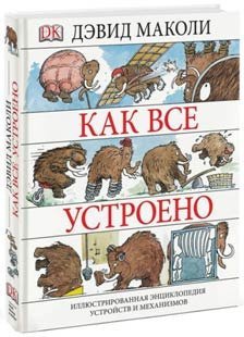 «Как всё устроено. Иллюстрированная энциклопедия устройств и механизмов» Дэвида Маколи и Нила Ардли – настоящее сокровище для детей того возраста, когда хочется знать, из чего устроено и как работает всё на свете, а у родителей ипотека, машину надо чинить и шоу «Голос» по телевизору. Эта книга – священные скрижали полных знаний о мире. С её помощью можно достичь практически вселенского могущества. От рычага и плуга до самых хитрых механических и электронных устройств – принцип действия разложен по полочкам, а клёвый мамонт демонстрирует, как это работает. Такая книжка – лучший новогодний подарок для всех детей от шести до 85 лет. В мире куплено уже больше миллиона экземпляров этой энциклопедии.Чтобы совсем не осталось никаких «почему», в довесок к книжке со слоном нужна ещё одна –