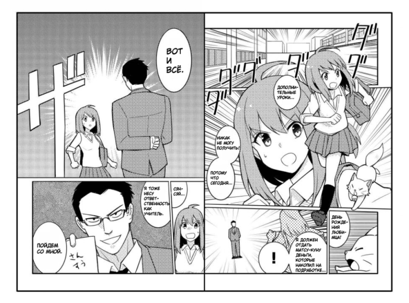 Теперь мангака схематично изображает действия персонажей. Художник представляет в голове сцены и показывает их с правильной стороны, выгодной и понятной для читателя. Для начинающих авторов есть шаблоны кадров на разные ситуации. Опытные мангаки экспериментируют, ищут новые углы и подачу.