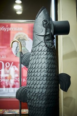Команда книжной сети «Буквоед» посчитала несправедливым, что в Северной столице до сих пор нет памятника петербургской корюшке. Тем более, что для Буквоеда это тоже знаковый символ — его книголюбы встречают в книжных магазинах сети. Поэтому долгожданная невская корюшка обосновалась на Невском проспекте во дворе флагманского книжного в честь юбилея города. Чешуйки в виде запятых, шляпа и латунная трость — облик корюшки продумала команда Буквоеда, а идею воплотила петербургская компания «Балтийская кузница».