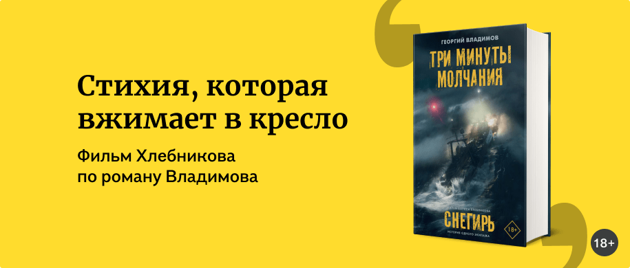На экраны вышел новый фильм известного режиссера Бориса Хлебникова «Снегирь», снятый по мотивам романа классика советской прозы Георгия Владимова «Три минуты молчания». Картина уже получила положительные отзывы критиков, а книга Владимова вышла в новом издании в «Редакции Елены Шубиной».