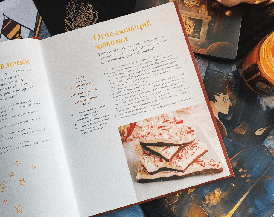 Ростбиф, ароматные пироги, йоркширский пудинг, божественные десерты ждут вас. У каждого блюда есть пошаговый план и точное количество ингредиентов. Но если понадобится помощь – домашний эльф Добби тут как тут.