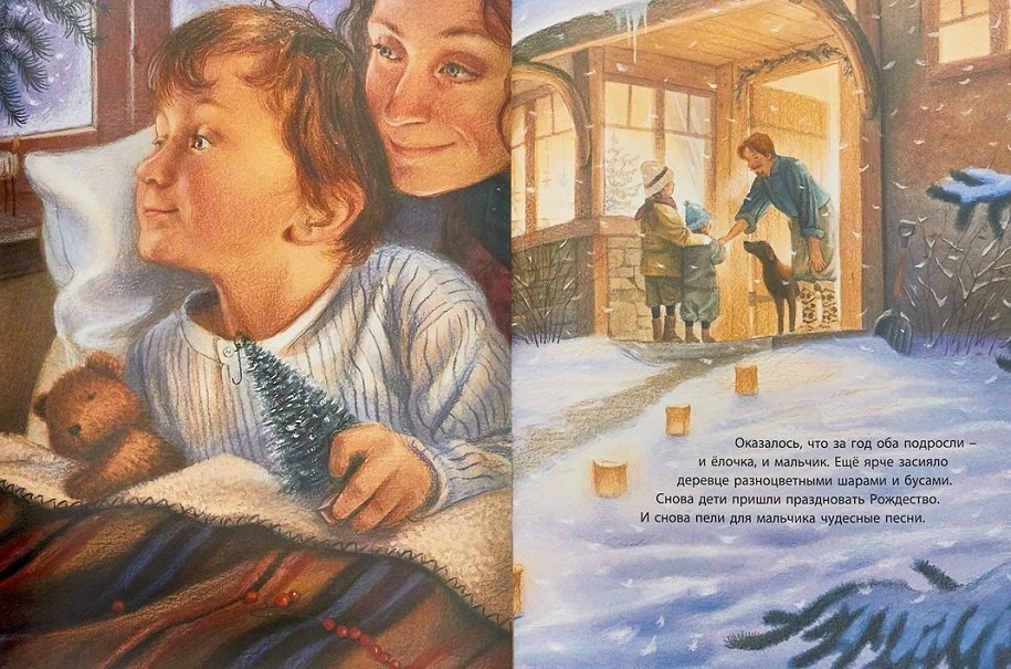 Но однажды случилось чудо – мальчик выздоровел и сам пришел к ёлочке отметить праздник. Эта трогательная история знаменитой американской писательницы Маргарет Уайз Браун пронизана новогодним волшебством, тишиной зимнего леса и верой в самые сокровенные мечты. Великолепные иллюстрации Джима Ламарша – заснеженные деревья, пушистый снегопад, сказочные новогодние украшения, светлые лица детей и взрослых – погружают в необыкновенную, праздничную атмосферу.